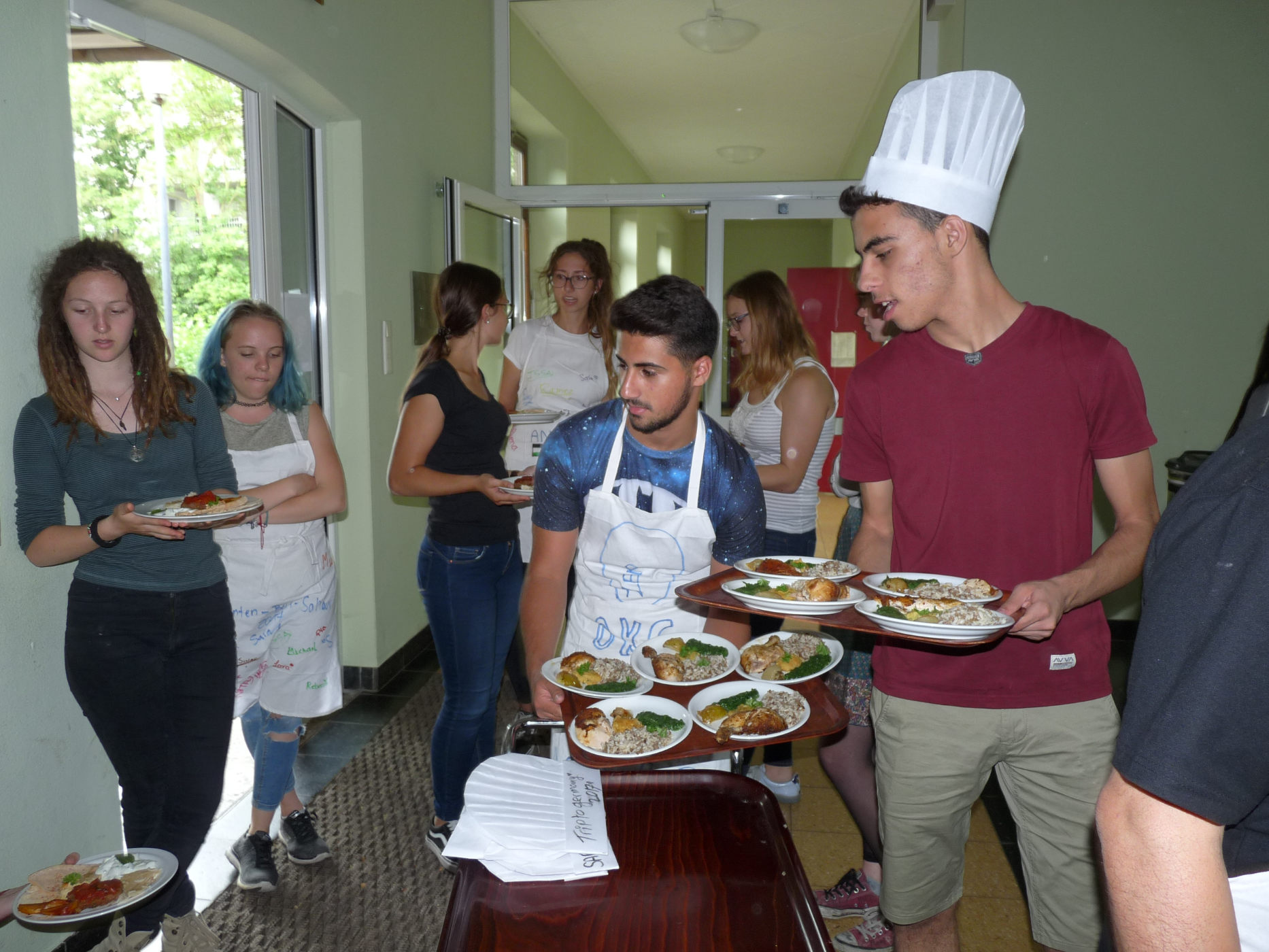 Mit dem Motto „Kichererbse trifft Sauerkraut – Heimat ist da, wo es einem schmeckt“ kochten wir gemeinsam und gegeneinander im Kochduell typisch niederrheinische und palästinensische Gerichte. Auf Ausflügen unter anderem zum Iglo-Werk in Reken, zum Versuchs- und Bildungszentrum Landwirtschaft Haus Riswick in Kleve, auf den Wochenmarkt in Münster und zur Sünner Brauerei in Köln zeigten wir unseren Gästen wo einige unserer Zutaten herkommen und was unsere Region an kulinarischer Vielfalt bietet.