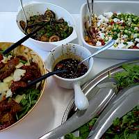 Der letzte gemeinsame Abend, Mittwoch der 3. Juli, wurde, laut vorherrschender Meinung, zu einem der besten Abende des Austausches. Zusammen mit den Familien der deutschen Teilnehmenden wurde auf dem Schulhof, vor der nun fertig gesprayten Wand, ein Abschiedsessen veranstaltet. Zuvor hatten die Schüler gemeinsam ein opulentes Buffet mit deutschen und palästinensischen Speisen vorbereitet. Der Abend endete mit dem Versuch den deutschen Schülern Dabkatanzen beizubringen, was eher von mäßigem Erfolg gekrönt war, aber für alle Anwesenden amüsant anzusehen.