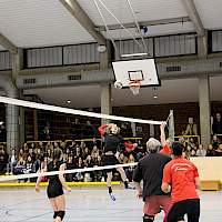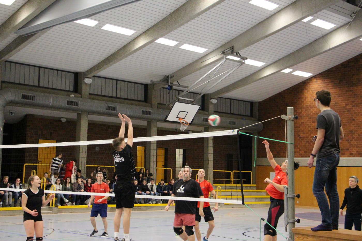 Die Leh­rer­aus­wahl konn­te das tra­di­tio­nel­le Leh­rer-Schü­ler-Vol­ley­ball­spiel zum Halb­jah­res­en­de so gera­de für sich entscheiden.