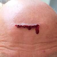 Das Schminken einer Platzwunde (siehe Foto) und die Darstellung vieler anderer Verletzungen lernten unsere Schulsanis bei dem Notfalldarstellungslehrgang im Januar.