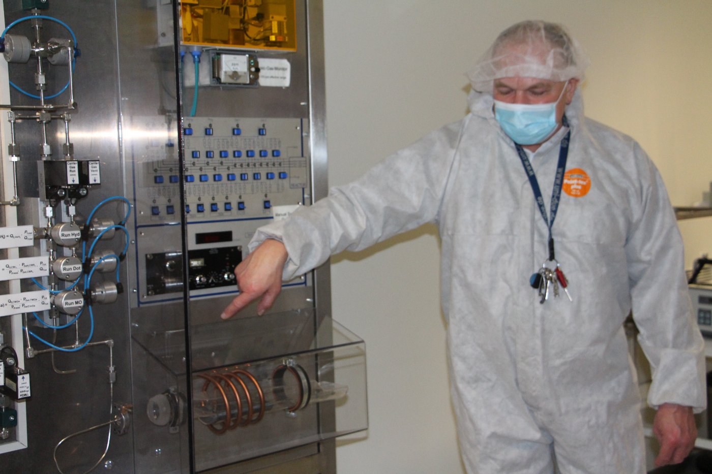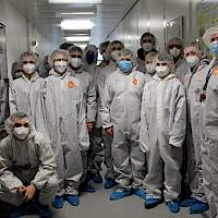 Nach einer kurzen Stärkung in der Mensa erhielten die Schülerinnen und Schüler von Dr. Wolfgang Brockerhoff eine exklusive Führung durch den Reinraum des Zentrums für Halbleitertechnik und Optoelektronik (ZHO). Durch die interessante Führung wurde deutlich, welche technischen Vorkehrungen getroffen werden müssen, damit winzig kleine Hochleistungsbauteile der Elektronik hergestellt und getestet werden können.