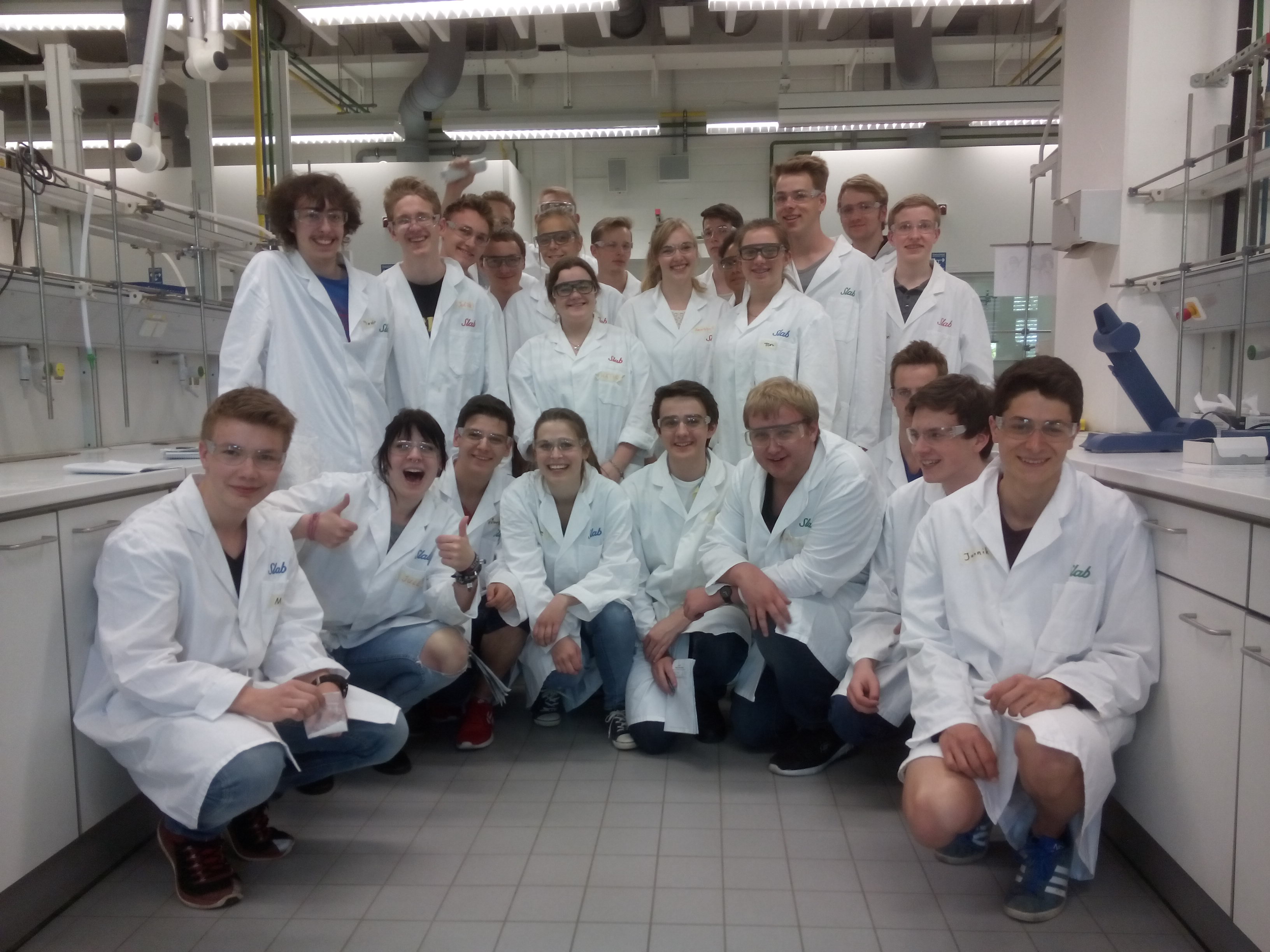 Am 19. März haben sich zwölf begeisterte Schülerinnen und Schüler des Chemie-Leistungskurses der Q1 auf den Weg zum Alfried-Krupp-Schülerlabor der Ruhr-Universität Bochum gemacht. Auf der Exkursion, die sie gemeinsam mit dem Chemie-Leistungskurs des Rheinberger Amplonius-Gymnasiums machten, sollten sie durch Synthese im Labor Acetylsalicylsäure herstellen, was wohl besser als Aspirin bekannt ist. In Partnerarbeit lernten die Schülerinnen und Schüler dann die praktische Arbeit im Chemielabor kennen und waren sichtlich begeistert von diesem Projekt. Es ist schließlich ein Unterschied zwischen der praktischen Arbeit in der Schule und der praktischen Arbeit in einem Chemielabor. Unter der Anleitung zweier engagierten Chemiestudentinnen gelang es schließlich auch allen, eigenes Aspirin herzustellen. Am späten Nachmittag ging es dann mit dem Zug zurück nach Xanten. Zurückblickend waren trotz des langen und durch die Laborarbeit auch anstrengenden Tages alle zwölf Xantener Schülerinnen und Schüler froh über ihre Arbeit und die Erfahrung, die sie gemacht haben und alle waren sich einig; sowas würden sie alle gerne mal wiederholen.