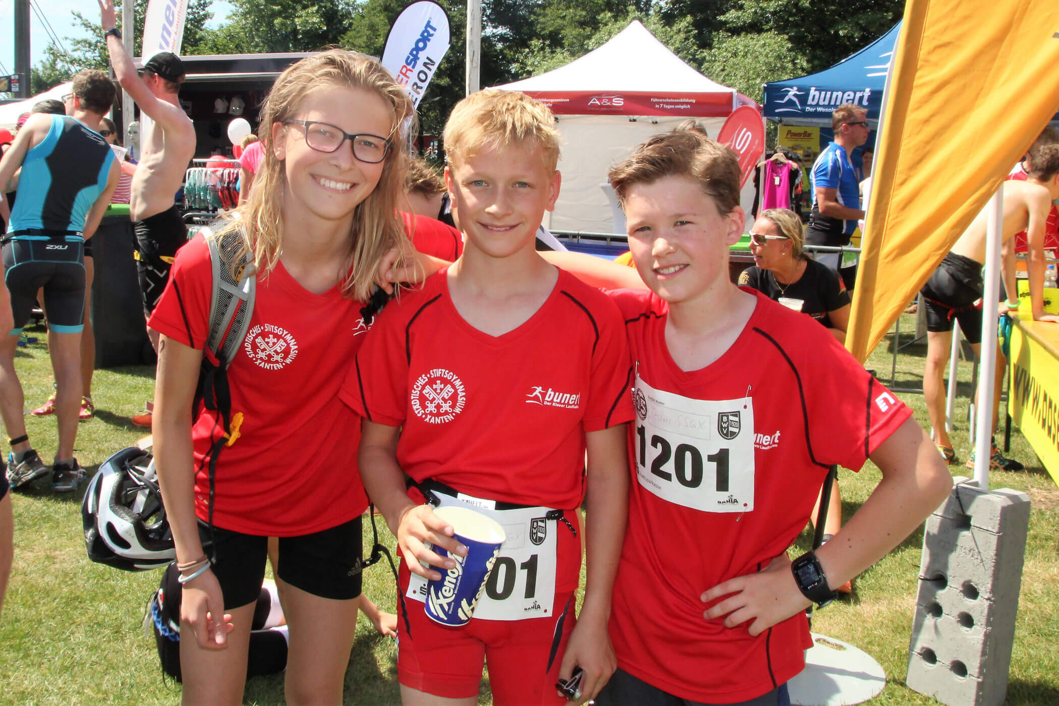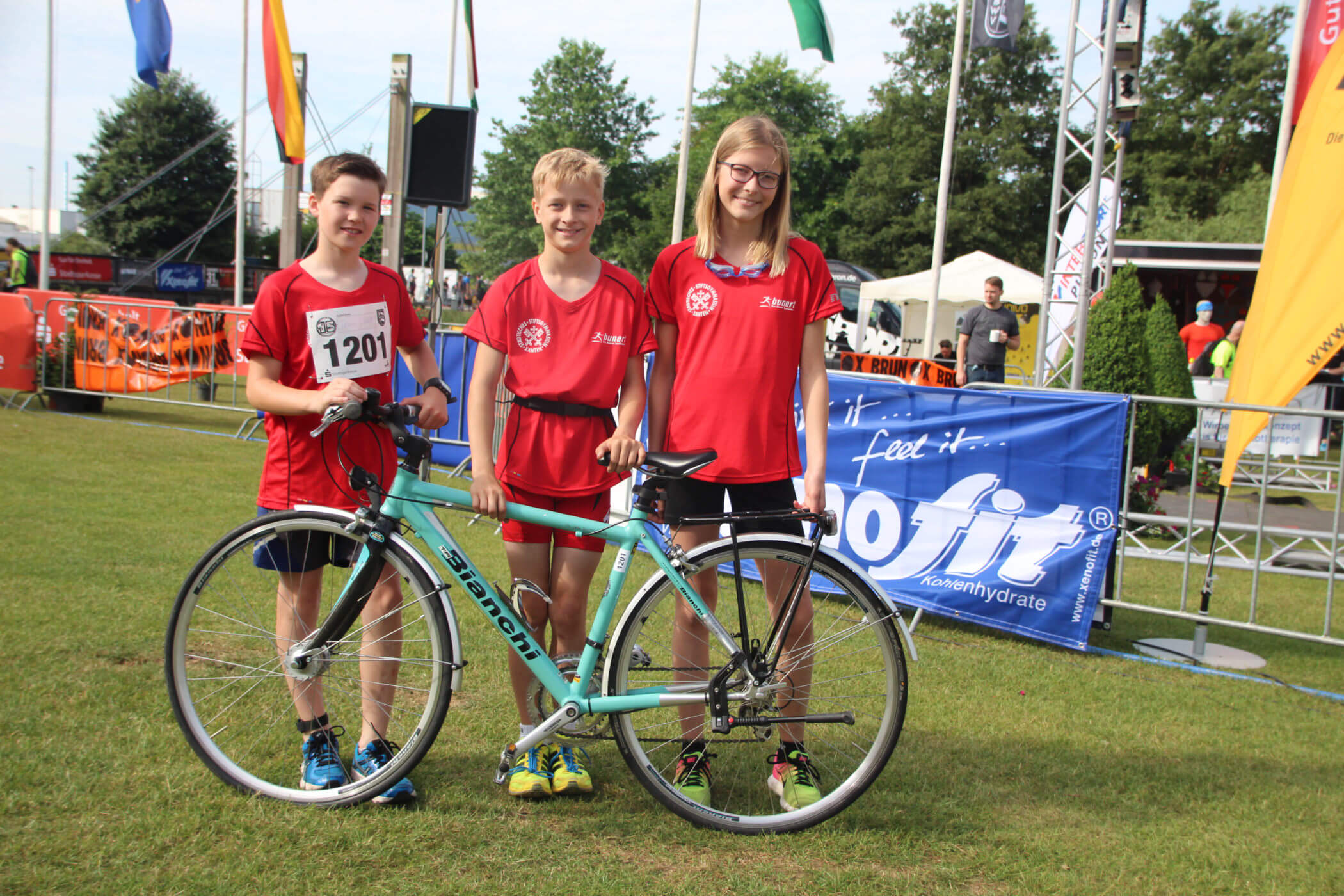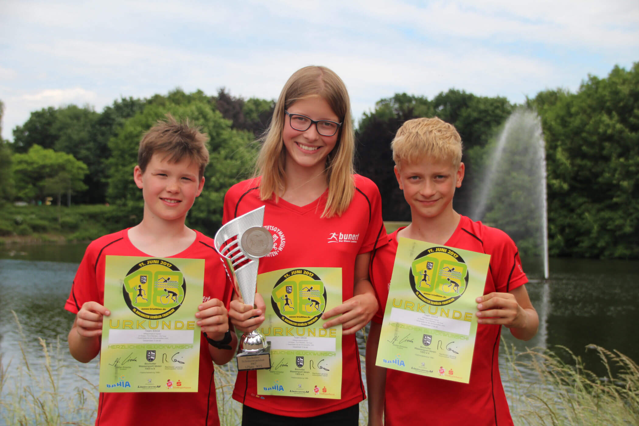Die Triathlon-Schul-Staffel bestehend aus Lilli Noack (200m Schwimmen), Fynn Reinders (10km Radfahren) und Olé Kuse (2,5km Laufen) konnte sich am vergangenen Wochenende beim 15. Bocholter-Schülertriathlon mit einer Gesamtzeit von 0:43:48 Stunden gegen 58 andere Staffeln und mit 26 Sekunden Vorsprung gegenüber dem Zweitplatzierten durchsetzen.