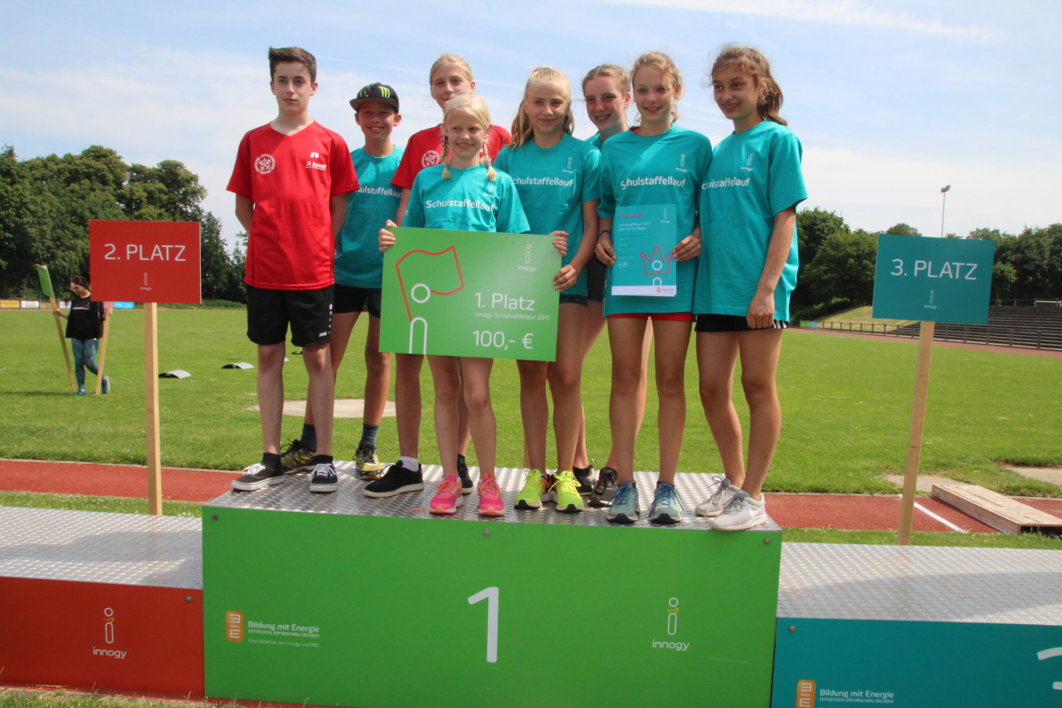 Der dieses Jahr erstmalig von innogy unterstütze Schulstaffellauf, auch bekannt unter dem Namen Willi-Wülbeck-Staffel, fand am letzten Mittwoch bei besten Bedingungen im Fürstenberg-Stadion statt. In einem spannenden Lauf verwies unsere erste Staffel die Staffeln von der Gesamtschule auf die Plätze 2 und 3. Auch unsere zweite Staffel bot eine tolle Leistung; mit einer Zeit von 2:00:07min verpasste sie nur um Haaresbreite den Sprung auf’s Podest.
