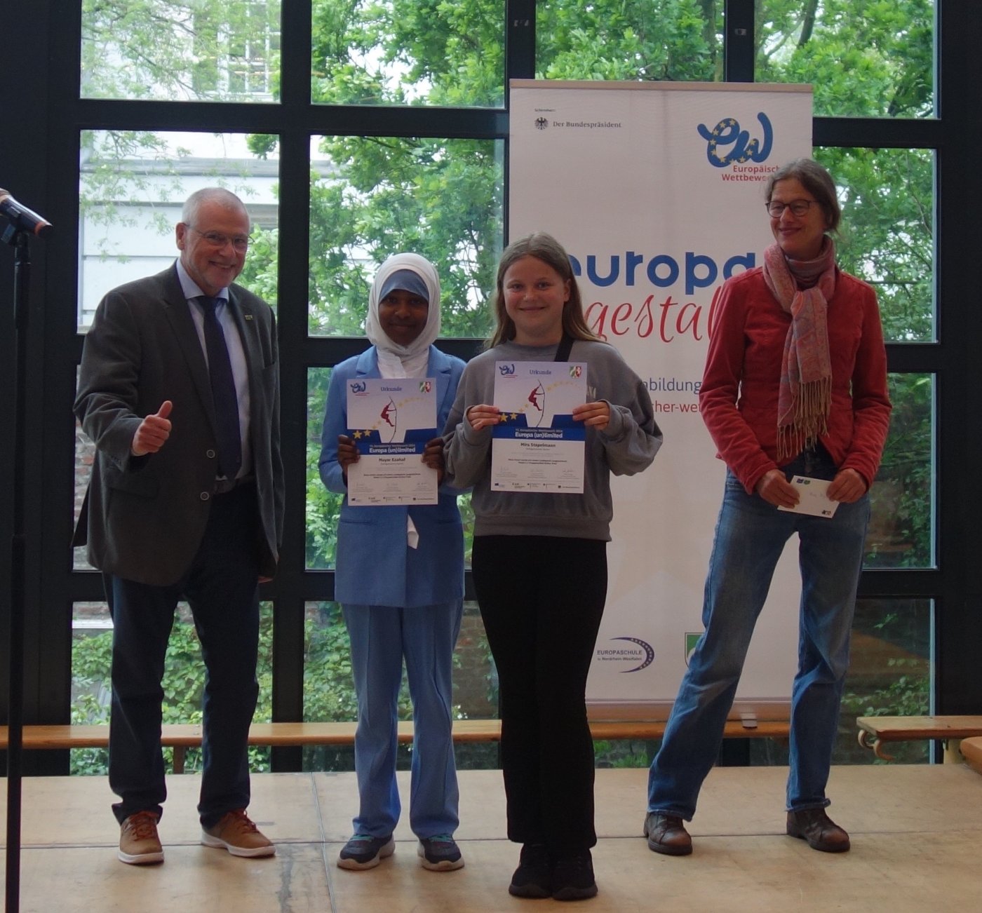 8 Schülerinnen der Klassenstufe 6 wurden mit Landespreisen des Landes NRW ausgezeichnet und erhielten teilweise eine Anerkennung auf Bundesebene. Eine tolle Leistung! Die Arbeiten sind im Rahmen der Europawoche in der Pausenhalle zu sehen.