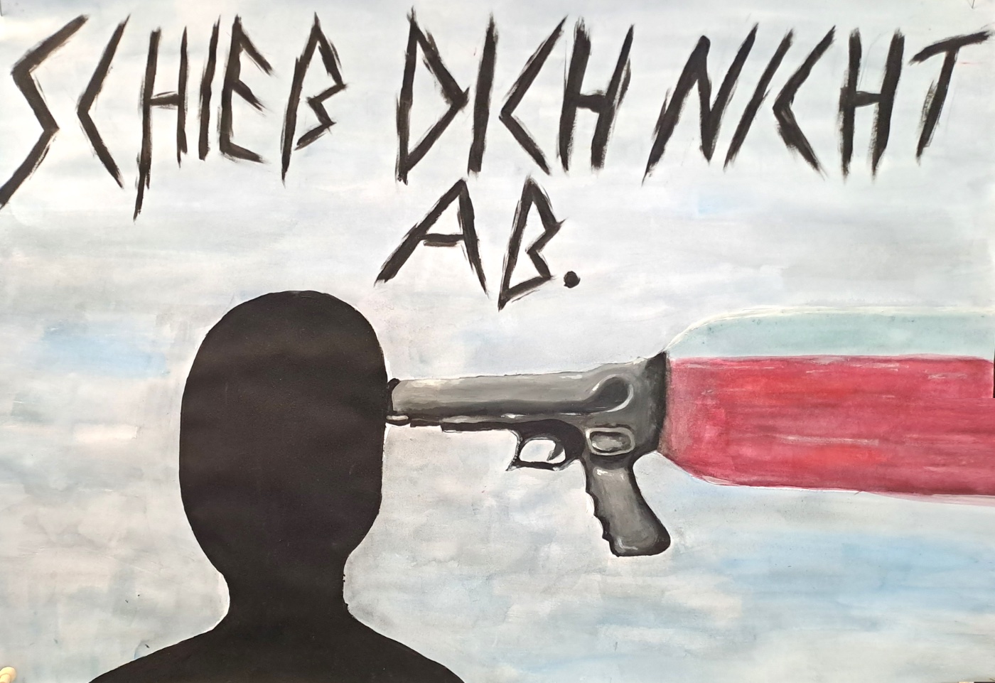 Noch immer trinken viele Jungen und Mädchen, bis die Ärztin oder der Arzt kommt. Laut Daten des Statistischen Bundesamts mussten 2022 rund 11.500 Kinder und Jugendliche im Alter von 10 bis 19 Jahren wegen akuten Alkoholmissbrauchs in deutschen Krankenhäusern behandelt werden. Die 10ten Klassen setzten sich mit dieser Thematik auseinander und es entstanden im Kunstunterricht eindrucksvolle Plakate die ein Zeichen gegen den Alkoholmissbrauch setzen. Die Plakate sind in einer Ausstellung im Mehrzweckraum für alle zu besichtigen.