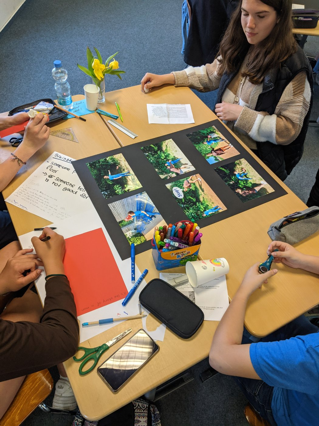 Bei einem Workshop zum Thema „Mikroplastik“ in Erftstadt wurde experimentiert und Möglichkeiten aufgezeigt, Mikroplastik bewusst zu vermeiden. Bei Interviews in Xanten und Köln befragten die SchülerInnen Passanten zudem zu ihren Shoppinggewohnheiten in Bezug auf Plastik. Bevor es Mittwoch mit der ganzen Gruppe nach Eindhoven ging, gestalteten die SchülerInnen in Gruppen noch kreative Fotostories zum Thema Plastikkonsum, die demnächst in der Mensa ausgestellt werden.