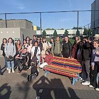 Von Donnerstag bis Samstag tagte die Gruppe dann am Augustinianum in Eindhoven. An unserer Partnerschule wurde der Blick nach vorne eröffnet und Möglichkeiten und Grenzen von Recycling von Plastik aufgezeigt und durch spannende Gastbeiträge aus der Industrie ergänzt. Am Freitag hatte die Gruppe dann die Möglichkeit Recycling konkret umzusetzen, indem sie gemeinsam eine Sitzbank aus alten Plastikdeckeln herstellte.
