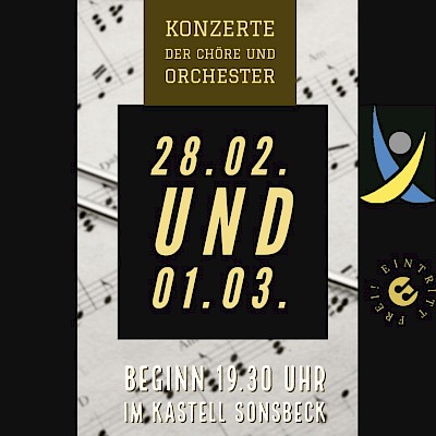 Die Musik – AGs des Städtischen Stiftsgymnasiums laden herzlich zu ihren Konzerten ein. Diese finden am Dienstag, 28.2. und Mittwoch 1.3. im Kastell Sonsbeck um 19:30 Uhr statt. Der Eintritt ist frei.