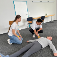 Am nächsten Tag hat der Wettbewerb angefangen, der in 13 verschiedene Stationen unterteilt war, welche unsere Kompetenzen als Ersthelfer, wie auch unsere Zusammenarbeit als Gruppe gefordert haben. Beispielsweise gab es eine Station, bei der vor allem Kommunikation und Zusammenhalt gefordert wurde, um gemeinsam eine Höhle zu bauen, was keine Herausforderung für unsere Schulsanis darstellte. Zudem gab es Stationen mit Unfall Darstellung oder Streitschlichtung, wobei die Schulsanis ihr Können, ihr Wissen und wieder ihre Teamfähigkeiten unter Beweis stellen mussten.