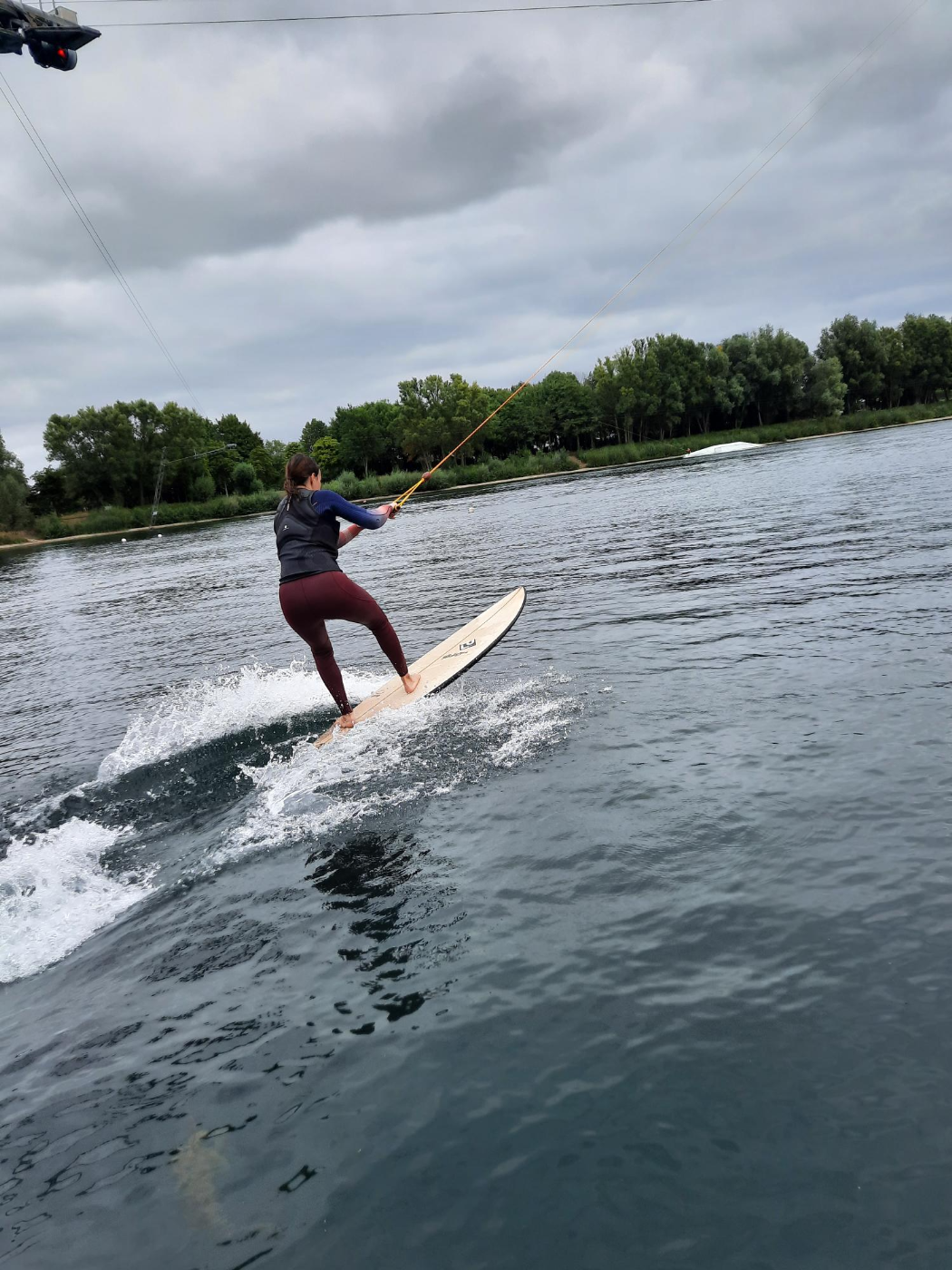 Viele Schüler*innen zeigten ihr Talent und konnten schon nach nur wenigen Versuchen die 1000 Meter lange Runde vollständig fahren. Folglich versuchten sich viele mit den Wakeboards. Wie sich zeigte, war das Fahren mit den Wakeboards schwieriger als mit den Skiern. Hier konnten Luke und Leon mit ihrer Erfahrung hilfreiche Tipps geben, wodurch andere auch erfolgreich waren. Einigen gelangen sogar mehrere Runden auf den Boards.