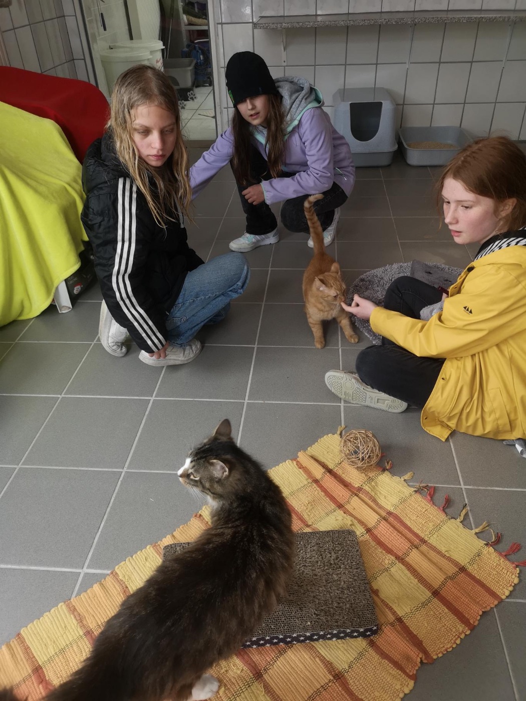 Daraufhin gingen wir ins nächste Katzenhaus. Hier wurden wir direkt von einigen Katzen begrüßt. Größtenteils hatten die Katzen sich zwar verkrochen, aber es gab trotzdem einige mutige, die sich haben streicheln lassen.