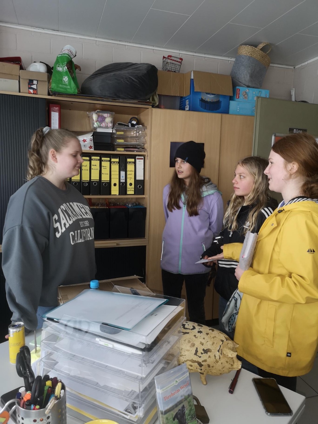 Da das das Ende unserer Führung war, gingen wir ins Büro des Tierheimes, um den Mitarbeitern das Geld zu übergeben. Sie haben sich sehr gefreut. Sie waren auch so freundlich uns ein paar Fragen zu beantworten. Wir fragten z.B., warum die Tiere ins Tierheim abgegeben wurden. Sie antworteten, dass das immer unterschiedlich wäre. Katzen würden häufig einfach auf der Straße gefunden. Hunde würden meistens abgegeben, weil die Hundebesitzer die Kosten und die Verantwortung unterschätzt hatten. Kleintiere würden meistens auch auf der Straße ausgesetzt und dort gefunden.