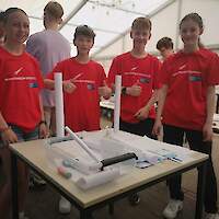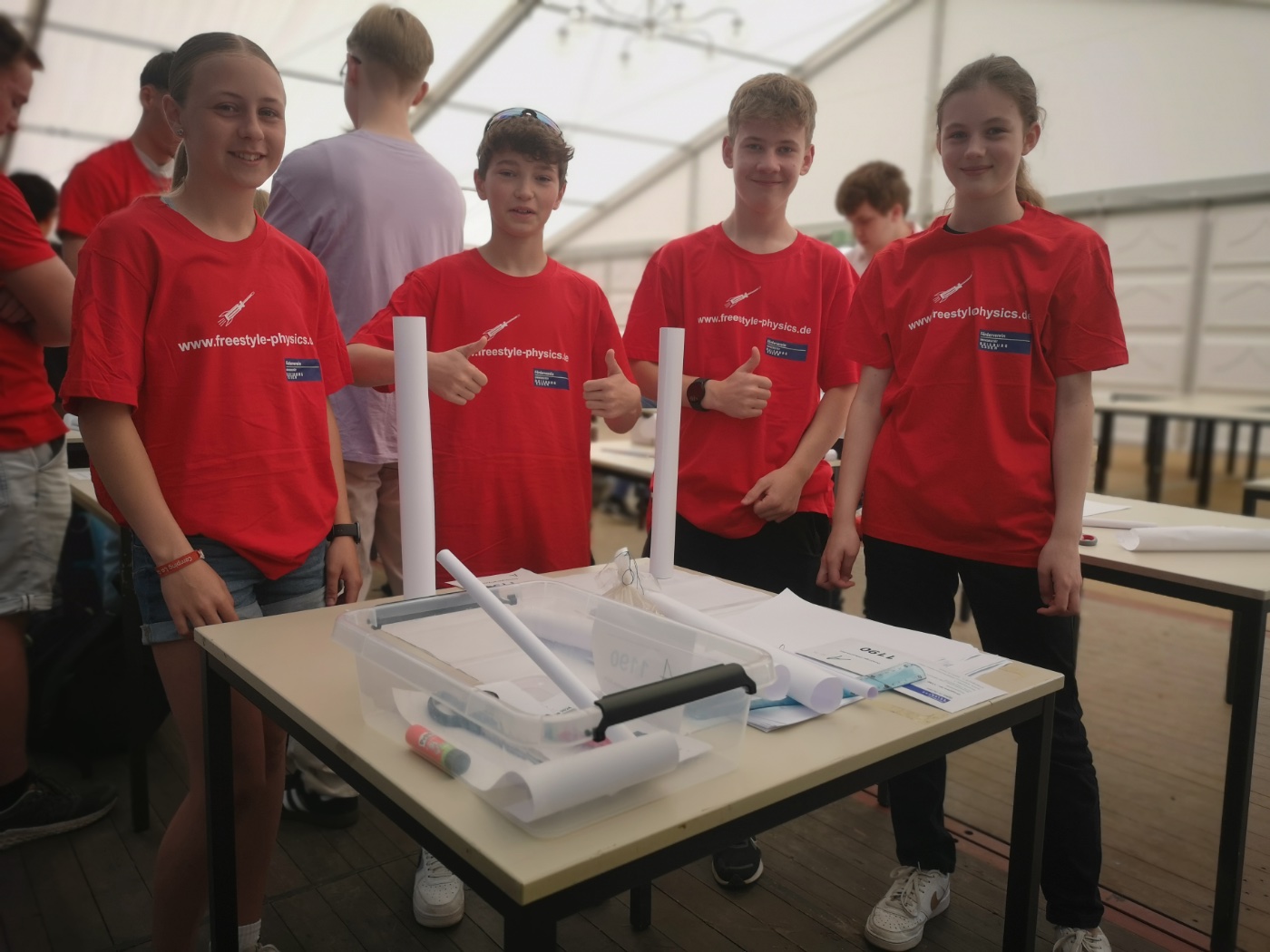 Die Schülerinnen und Schüler aus der 8c, Lenja, Amelie, Lennox und Lasse haben es geschafft, einen Kran mit einem Eigengewicht von 17,9 g nur aus Papier und Bastelkleber zu bauen und belegten damit den zweiten Platz. Sie konnten sich gegen ca. 200 Teilnehmergruppen aus ganz NRW durchsetzen und erhielten einen Gutschein in Höhe von 200 Euro. Herzlichen Glückwunsch.
