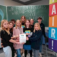 „Wir möchten uns im Namen von Fairtrade Deutschland e.V. ganz herzlich bei dem Schulteam und allen Beteiligten für den großen Einsatz zur Förderung des fairen Handels bedanken. Ihre Schule ist ja trotz der schwierigen Zeit wirklich sehr engagiert! Es macht großen Spaß zu sehen, dass sich der Gedanke des fairen Handels fest im Schulalltag verankert hat und so vielfältige Aktionen durchgeführt werden.“