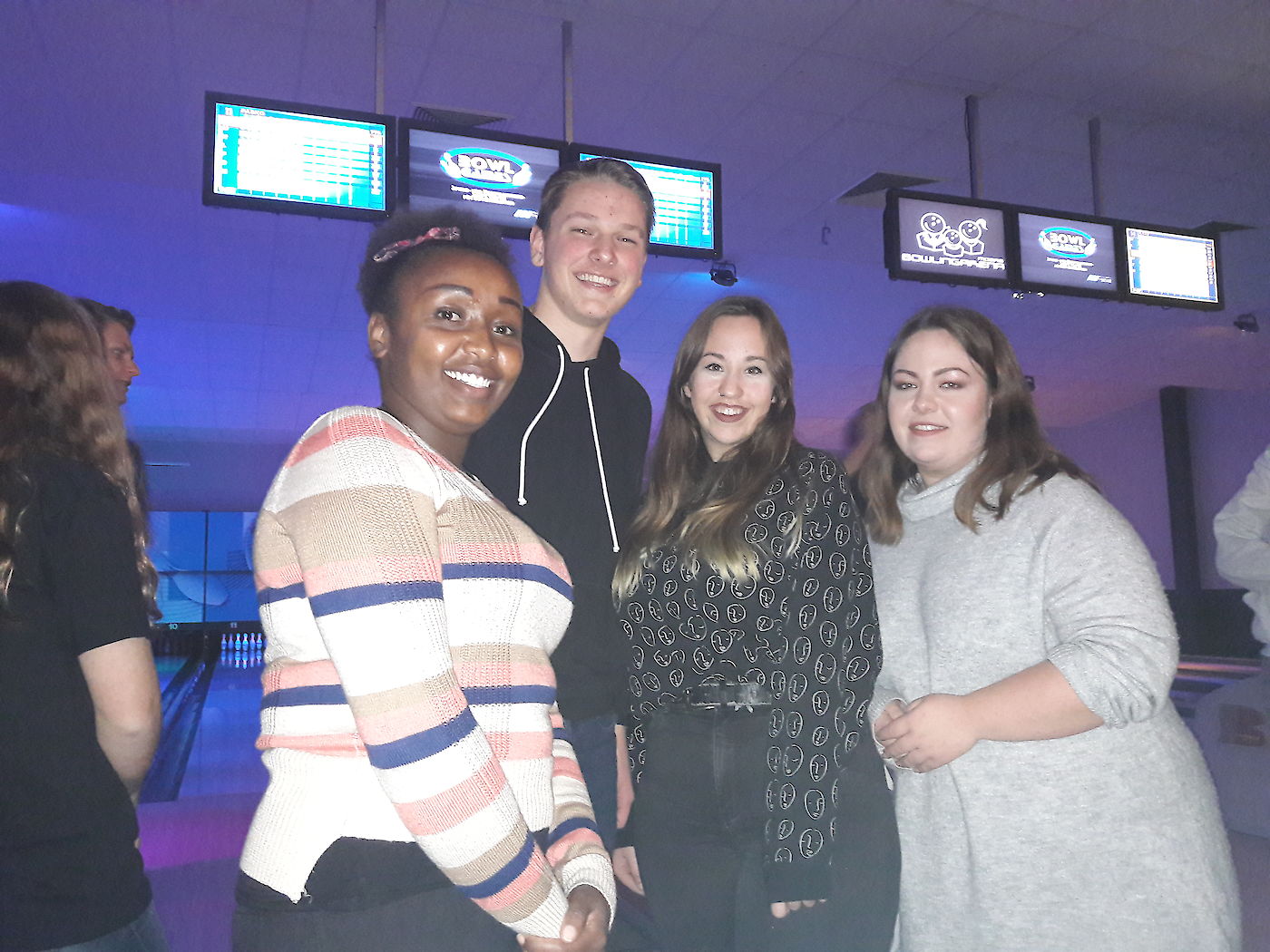 Freitagvormittag informierten Luka und Charity die Jahrgangsstufe 9 über die Kultur Kenias und den Ablauf des Praktikums, denn die Schülerinnen und Schüler dieser Jahrgangsstufe können sich in dem kommenden Schuljahr für das Praktikum bewerben. Außerdem hielten sie in Oberstufenkursen Vorträge zum ökologischen Anbau. Den Abend genossen die vorherigen fünf Teams mit Luka und Charity auf der Bowlingbahn.