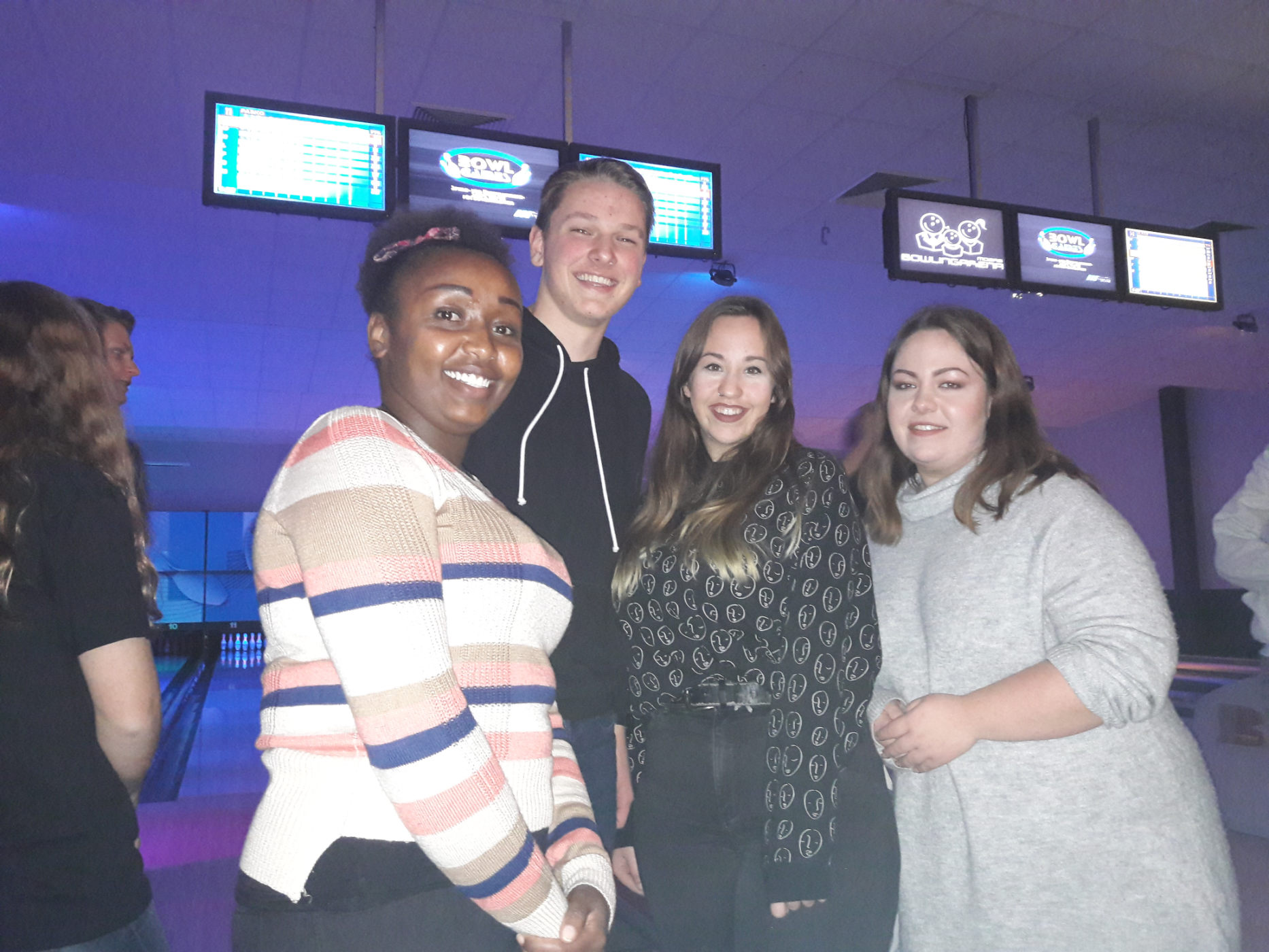 Freitagvormittag informierten Luka und Charity die Jahrgangsstufe 9 über die Kultur Kenias und den Ablauf des Praktikums, denn die Schülerinnen und Schüler dieser Jahrgangsstufe können sich in dem kommenden Schuljahr für das Praktikum bewerben. Außerdem hielten sie in Oberstufenkursen Vorträge zum ökologischen Anbau. Den Abend genossen die vorherigen fünf Teams mit Luka und Charity auf der Bowlingbahn.