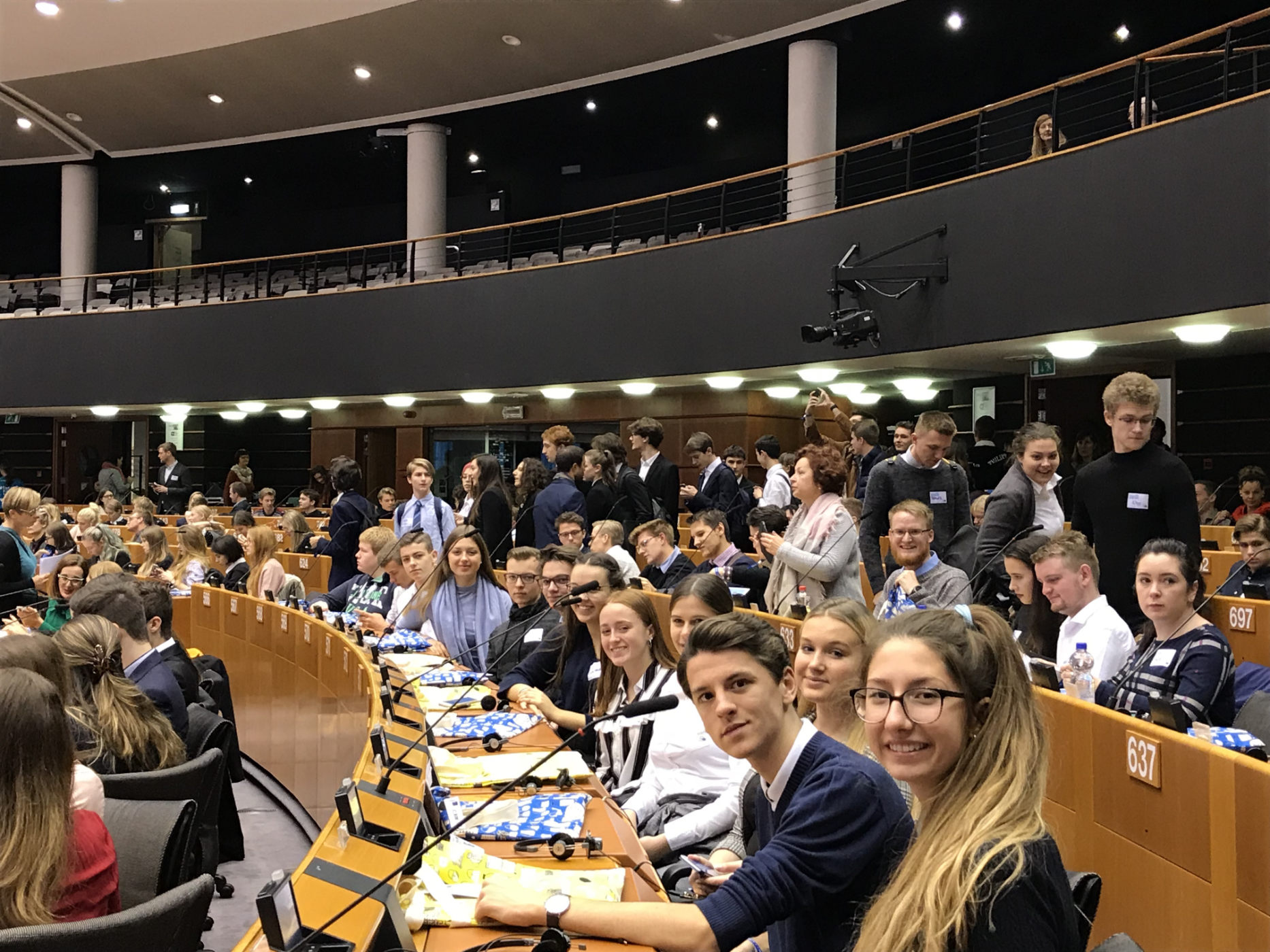 Als uns im September die E‑Mail aus Berlin erreichte, dass wir am European Youth Parliament (EYP) in Brüssel teilnehmen dürfen, war die Freude riesig. Als lediglich eine von zwei deutschen Schulen bekamen wir die Möglichkeit, in die belgische Hauptstadt zu reisen, um mit 800 anderen Jugendlichen aller Mitgliedsstaaten der EU im Plenarsaal des Europäischen Parlaments über wichtige Themen zu diskutieren – und das, obwohl wir erst im Sommer als Botschafterschule des Europäischen Parlaments zertifiziert wurden.