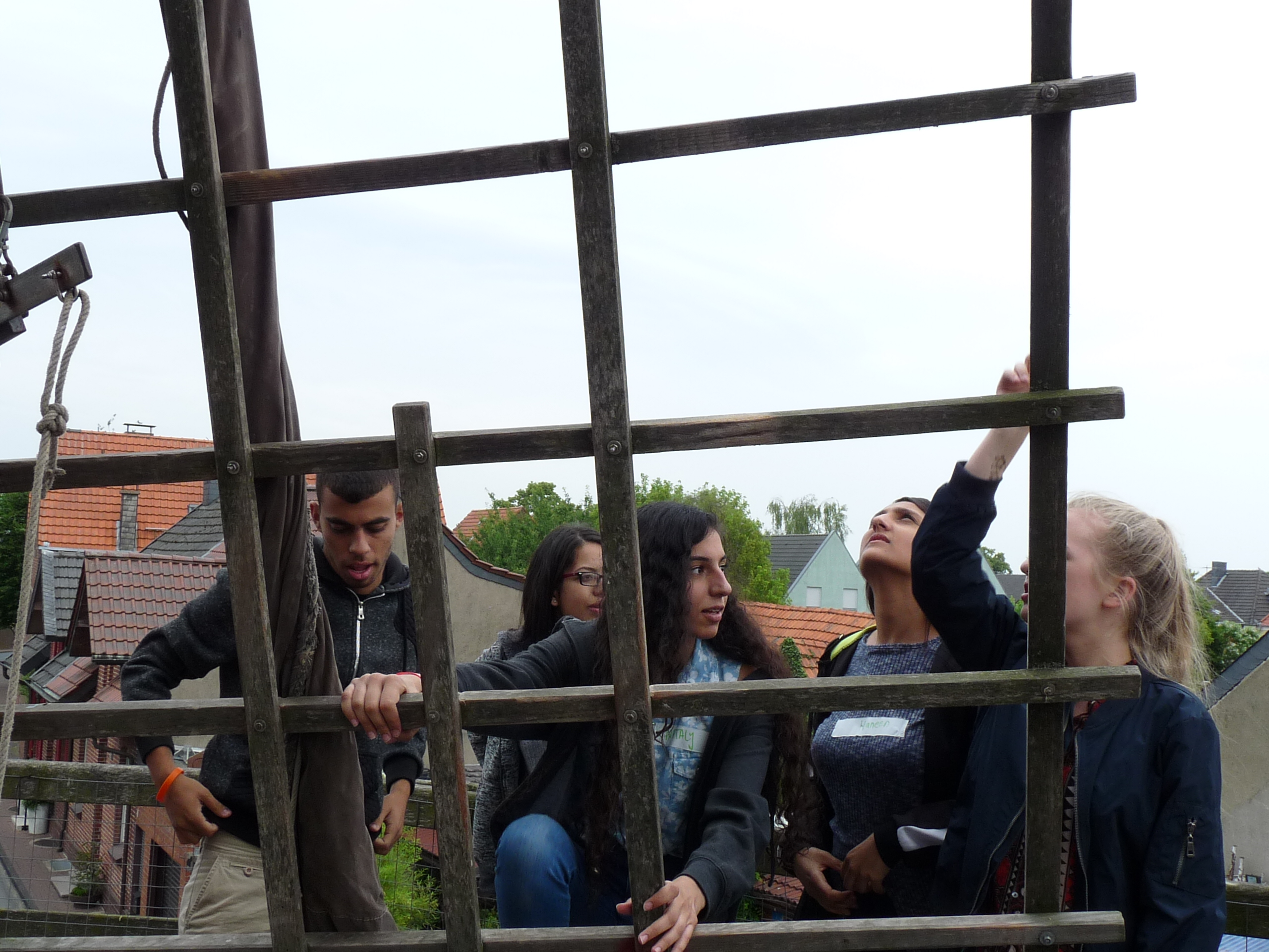 Mit dem Motto „Kichererbse trifft Sauerkraut – Heimat ist da, wo es einem schmeckt“ kochten wir gemeinsam und gegeneinander im Kochduell typisch niederrheinische und palästinensische Gerichte. Auf Ausflügen unter anderem zum Iglo-Werk in Reken, zum Versuchs- und Bildungszentrum Landwirtschaft Haus Riswick in Kleve, auf den Wochenmarkt in Münster und zur Sünner Brauerei in Köln zeigten wir unseren Gästen wo einige unserer Zutaten herkommen und was unsere Region an kulinarischer Vielfalt bietet.