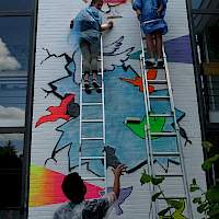 Ab Montag, dem 1. Juli, wurde es kreativ. Denn nun galt es eine Mauer des SSGX künstlerisch nach dem Vorbild Banksys zu gestalten. Unter Aufsicht der Kunstlehrerin Alice Berking und dem niederländischen StreetArt – Künstler Dikkie begannen die Schüler in Zusammenarbeit Motive zu entwerfen. Diese wurden danach in mühsamer Kleinarbeit in Schablonen geschnitten und innerhalb von einem Tag auf die Wand gesprayt.