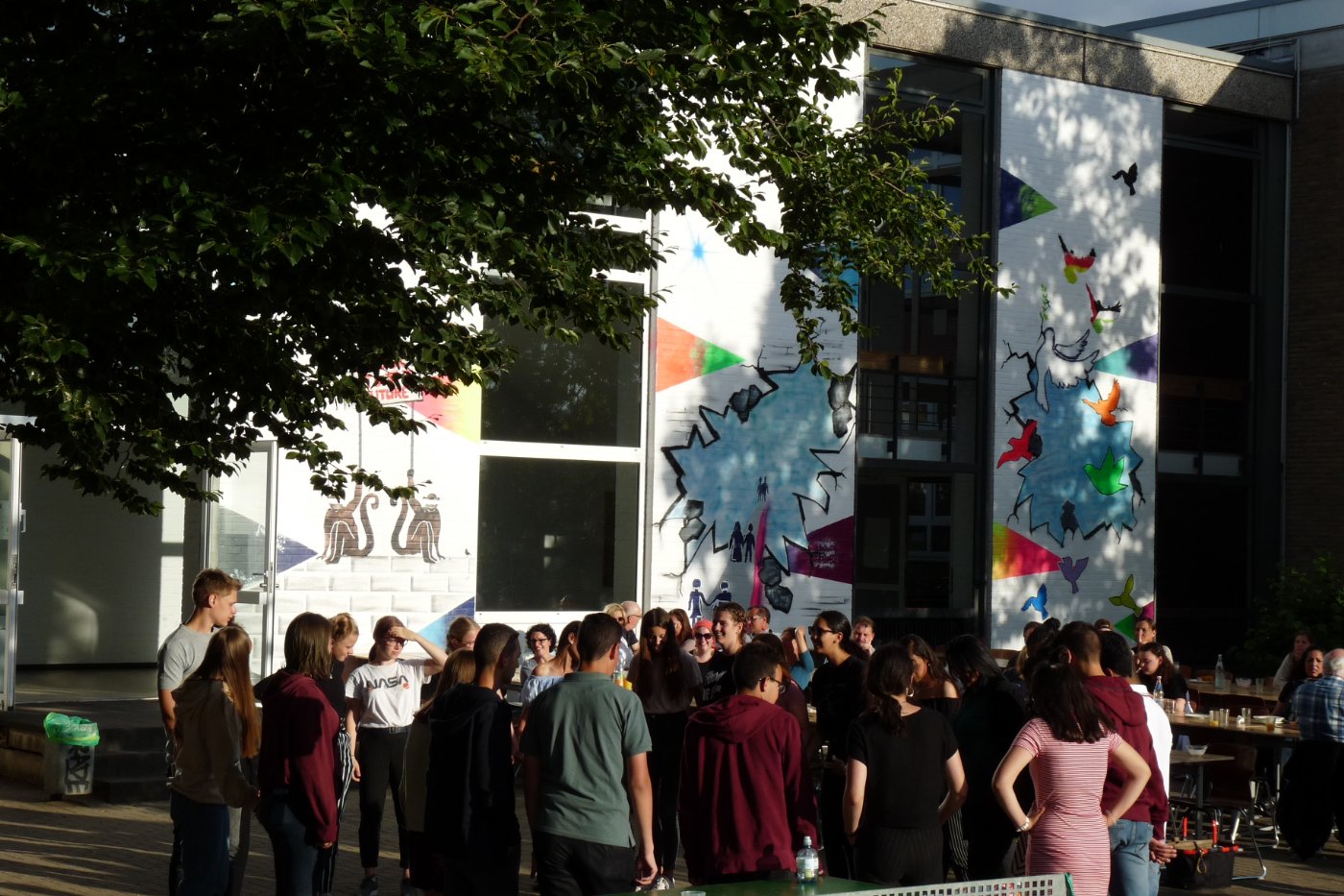 Donnerstag ging es gemeinsam nach Dortmund. Das Street-Art Bingo, eine Art Stadtparcours, bei dem möglichst viele bestimmte Graffitis in einem bestimmten Gebiet innerhalb von 90 Minuten gefunden werden mussten, brachte die Gruppe näher zusammen. Beim Biparcour durch die Stadt Xanten mussten dann am folgenden Tag verschiedene Gruppen Aufgaben lösen und möglichst viele virtuelle Punkte sammeln, während die Stadtgeschichte aufgearbeitet wurde. Innerhalb der Rallye bemalten die Schüler einen der Stromkästen aus dem Projekt „Xanten FAIRschönern“ neu an. Zielpunkt der Stadtrallye war das Rathaus, bei dem Thomas Görtz auch von seinem Besuch in Palästina berichtete. Der Abend endete für manch einen feierlich auf dem Abschlussball der Abiturienten des SSGX. Andere wiederum statteten der Mittsommernacht einen Besuch ab, nach einer durch die Schüler selbst organisierten Tretbootfahrt.