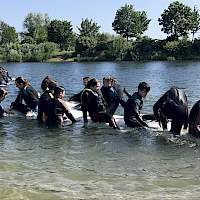 Bei herrlichem Wetter, das die Gruppe die komplette Austauschwoche über begleitete, lernten unsere Gäste Xanten und Umgebung spielerisch kennen, wandelten auf den Spuren Karls des Großen in Aachen, blieben auf den Super Fly- Trampolinen in Duisburg in Bewegung und hielten Balance auf den schmalen Stand-Up-Paddeling-Brettern, die zwar nicht die Welt, jedoch das Bewahren vor dem kühlen Nass der Xantener Nordsee bedeuteten. Dass hier niemand gänzlich trocken blieb, war angesichts der Hitze wohl zu verschmerzen.