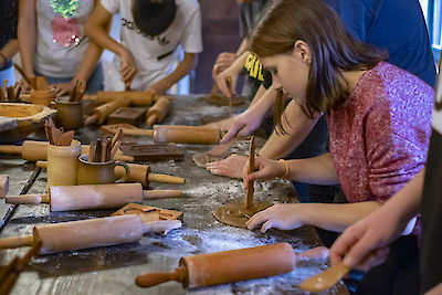 So backten wir gemeinsam die beste Pizza der Stadt, lernten das Lebkuchenhandwerk in der Kopernikusstadt Toruń kennen, Pierogi, Bigos und andere polnische Spezialitäten waren ebenfalls mit von der Partie. Doch da man sich ja nicht ausschließlich den Bauch vollschlagen wollte, hielten uns zahlreiche Aktivitäten wie die Seifenherstellung in Bydgosz, abwechslungsreiche Integrationsspiele zum Kennenlernen, ein Besuch im Spaßbad, Bowling oder auch der Aufstieg auf den Turm des Wasserschlosses in Świecie immer in Bewegung.
