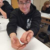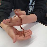 Seit Oktober 2023 pflege wir nsogar Reptilien. Flix und Flux, zwei junge Kornnattern, die wir über den Ring der Vivariumschulen vom Wilhelm Dörpfeld Gymnasium in Wuppertal gegen Eier unserer Türkisblauen Stabschrecken (Achrioptera manga) erhalten haben, bereichern das Leben im Vivarium und werden schon ab und zu im Unterricht eingesetzt.