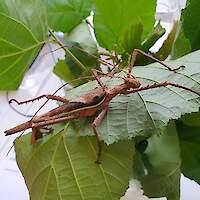 Neben den Fischen pflegen wir auch Insekten. Derzeit sind es verschiedene Stabschrecken, Käfer, mehrere Arten von Gespenstschrecken und Fangschrecken. Auch andere Wirbellose, wie Achatschnecken, Tausendfüßer und Asseln pflegen und beobachten wir.