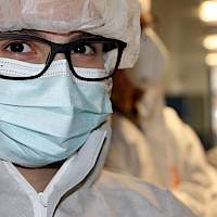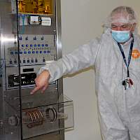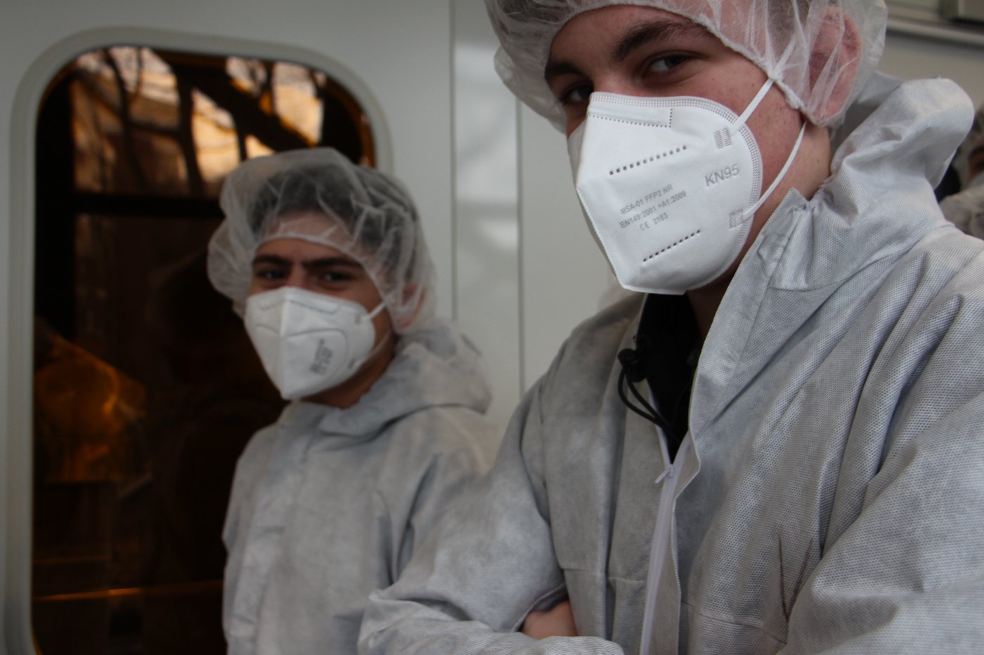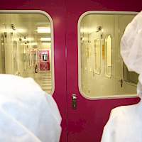 Nach einer kurzen Stärkung in der Mensa erhielten die Schülerinnen und Schüler von Dr. Wolfgang Brockerhoff eine exklusive Führung durch den Reinraum des Zentrums für Halbleitertechnik und Optoelektronik (ZHO). Durch die interessante Führung wurde deutlich, welche technischen Vorkehrungen getroffen werden müssen, damit winzig kleine Hochleistungsbauteile der Elektronik hergestellt und getestet werden können.