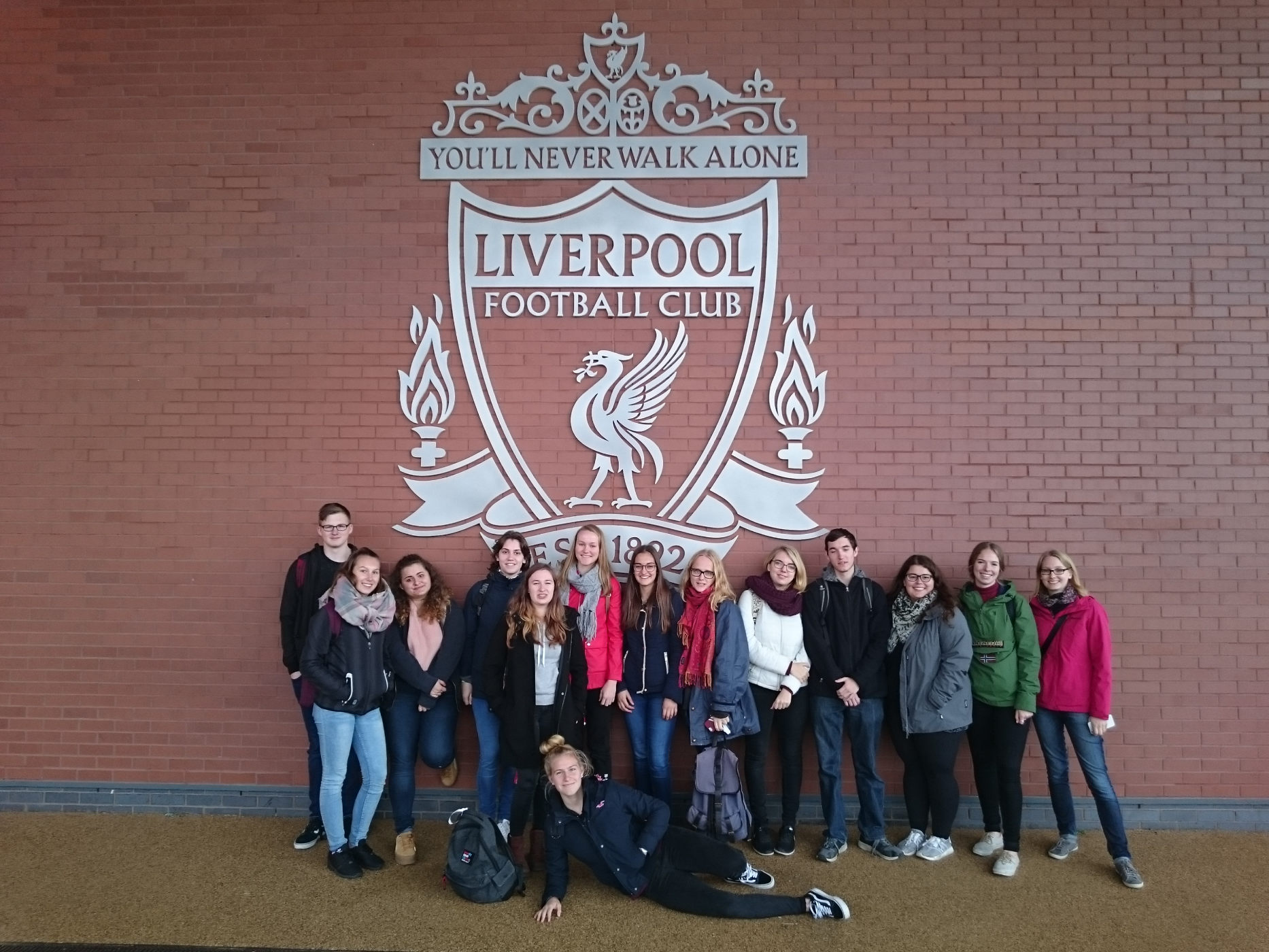 Schließlich rundete eine Tour durch das Anfield Road Stadion, welches als Heimat des traditionsreichen Liverpooler Fußballvereins gilt, unsere Kursfahrt ab. Hier erhielten wir spannende Einblicke hinter die Kulissen, durften unsere eigene „Pressekonferenz“ geben, die Kabinen der Mannschaften erkunden und auf der Tribüne Platz nehmen.