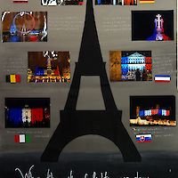 Antonias und Monas Collage, die im Kunstunterricht der Europaklasse entstand, thematisiert eine dieser neuen Herausforderungen, die sich Europa in Zeiten von Terrorgefahr und Terrorakten stellen muss. Die Collage zeigt die Anteilnahme und Solidarität vieler europäischer Länder nach dem Terrorakt 2015 in Paris, sowie Zitate von berühmten Persönlichkeiten über Werte, die ein Europa der Zukunft ausmacht.