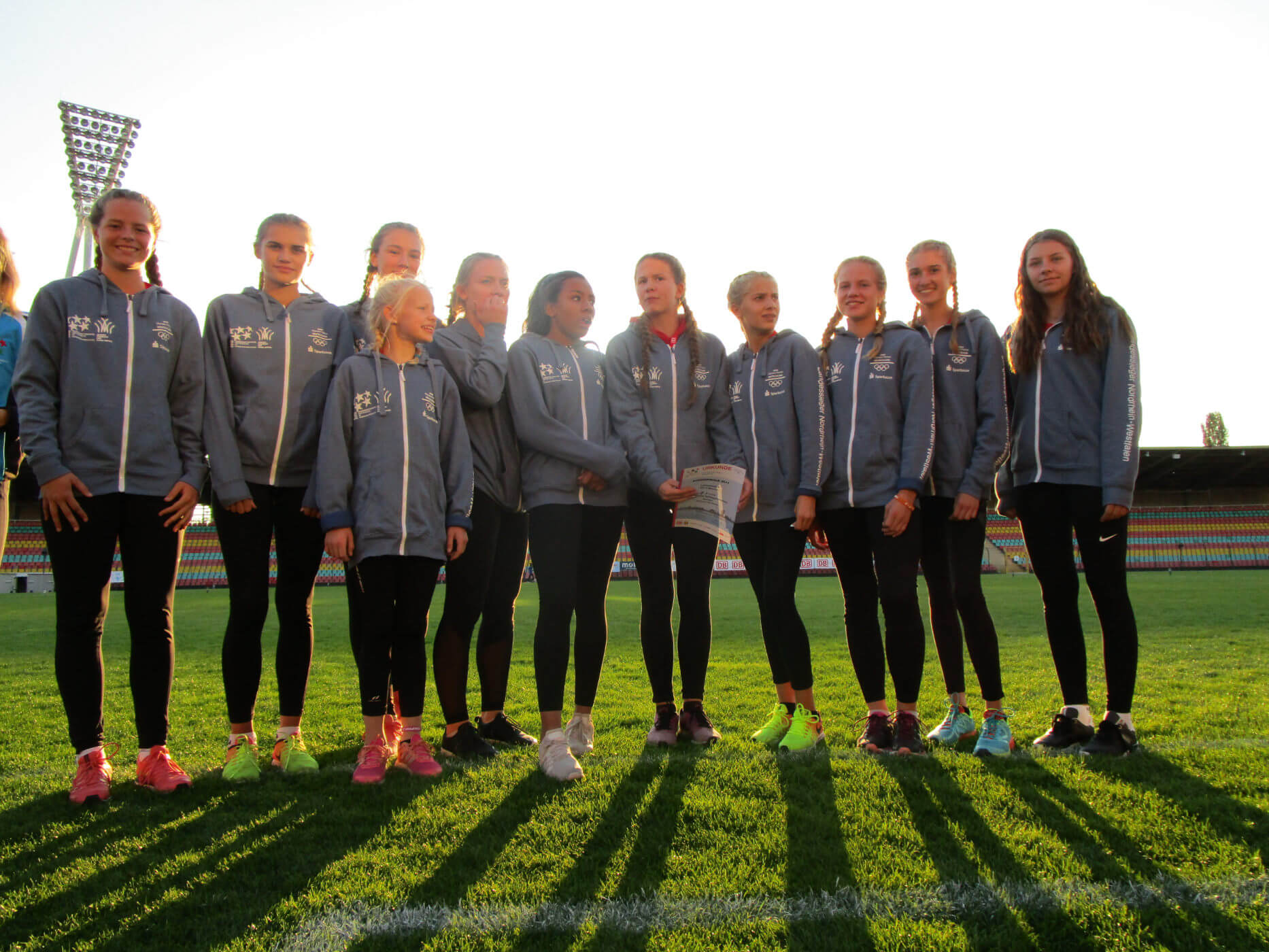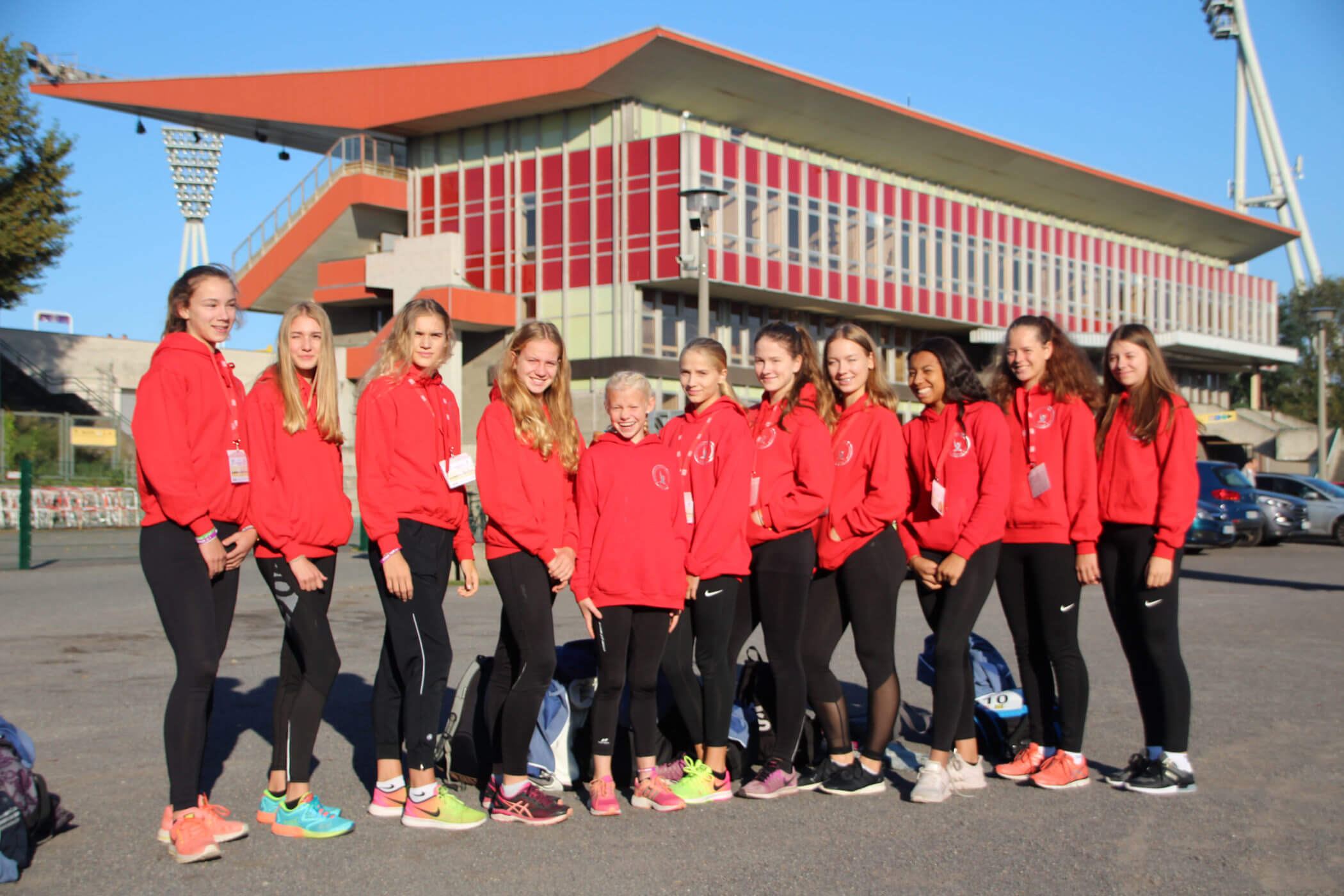 Bei allerbesten äußeren Bedingungen stellten die elf Athletinnen dann am Wettkampftag einmal mehr ihre herausragenden sportlichen Fähigkeiten unter Beweis. Mit beeindruckenden Leistungen im Sprint und im Hochsprung blieb man nach zwei Disziplinen sogar noch auf Tuchfühlung zu einem Podestplatz. Die Konkurrenz aus dem ostdeutschen Sportschulen war jedoch überragend, so dass man am Ende auch den sechsten Platz – quasi „Die Besten aus dem Westen“ – euphorisch feierte. Mit 7322 Punkten bestätigten die Schülerinnen zudem ihre Leistung aus dem Landesfinale und vertraten damit auch unser Land NRW würdig in Berlin!