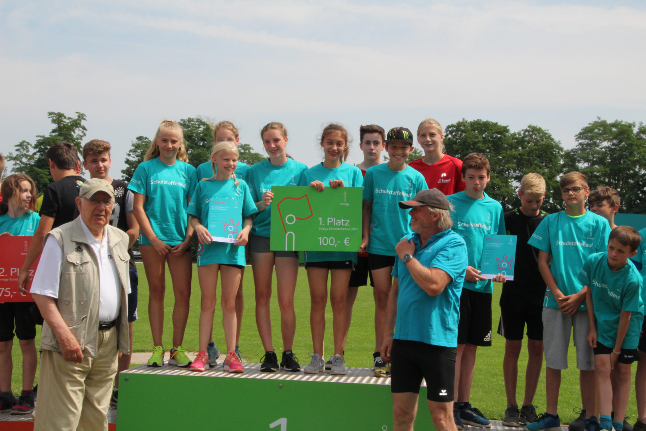 Der dieses Jahr erstmalig von innogy unterstütze Schulstaffellauf, auch bekannt unter dem Namen Willi-Wülbeck-Staffel, fand am letzten Mittwoch bei besten Bedingungen im Fürstenberg-Stadion statt. In einem spannenden Lauf verwies unsere erste Staffel die Staffeln von der Gesamtschule auf die Plätze 2 und 3. Auch unsere zweite Staffel bot eine tolle Leistung; mit einer Zeit von 2:00:07min verpasste sie nur um Haaresbreite den Sprung auf’s Podest.